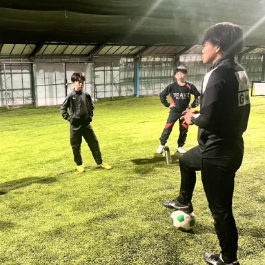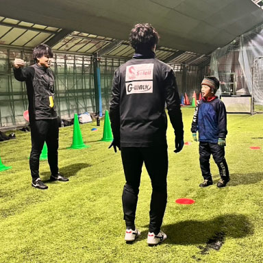 また、コーチといっしょにプレーをして感じたことや今何が必要なのか、自分が小学生に戻った時に何を練習したほうがいいかを考え子どもたちに伝えています。実際の試合で子どもたちが自分で判断してプレーを選択できるように、プレーの強制はなく選択肢を増やすことに充填を置いています。